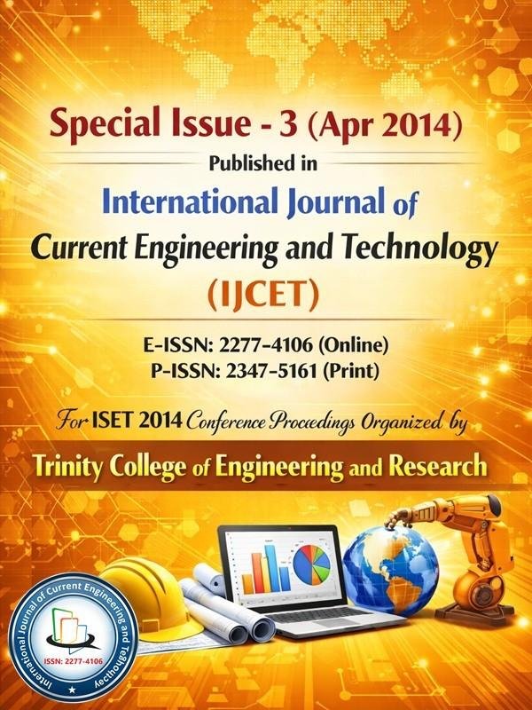 This Special Issue (April 2014) of the International Journal of Current Engineering and Technology (IJCET) features selected research papers from the International Symposium on Engineering and Technology (ISET 2014), organized by Trinity College of Engineering and Research, Pune, Maharashtra, India. The symposium provided a dynamic platform for researchers, academicians, and industry experts to present and exchange innovative ideas across various engineering and technology domains. The papers included in this issue cover a wide range of subjects such as electronics and communication, computer science, information technology, civil engineering, mechanical engineering, electrical engineering, and applied sciences. Each paper reflects original scholarly work, making this issue a significant contribution to the advancement of engineering research and technology.