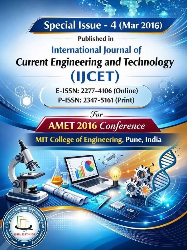Special Issue-4 (Mar 2016) of the International Journal of Current Engineering and Technology presents selected peer-reviewed papers from the Applied Mechanical Engineering Technologies (AMET 2016) conference organized by MIT College of Engineering, Pune, India. This section showcases original research and practical innovations addressing contemporary challenges in mechanical engineering and allied fields. The contributions emphasize experimental investigations, analytical modeling, design optimization, manufacturing processes, thermal and fluid engineering, materials, and emerging technologies. Each paper reflects the conference’s objective of bridging academic research with industrial applications, promoting knowledge exchange among researchers, academicians, and professionals. Collectively, the section captures the technical depth, interdisciplinary scope, and applied relevance that characterized AMET 2016, making it a valuable reference for researchers and practitioners alike.